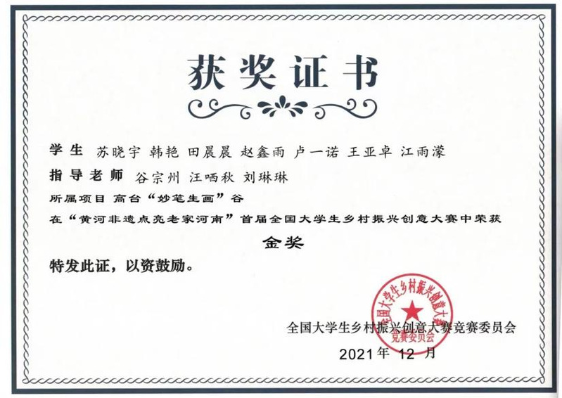 2021年七月份,谷宗州老师带领学生们参加了首届大学生乡村振兴创意大赛,以积极的姿态对河南省云台山优质的中国传统文化进行再创作。最初在设计中以“竹林七贤”为主要设计方向,顺利通过初试,但是河南一场突如其来的特大暴雨和之后疫情的影响,云台山项目只能就此中断。