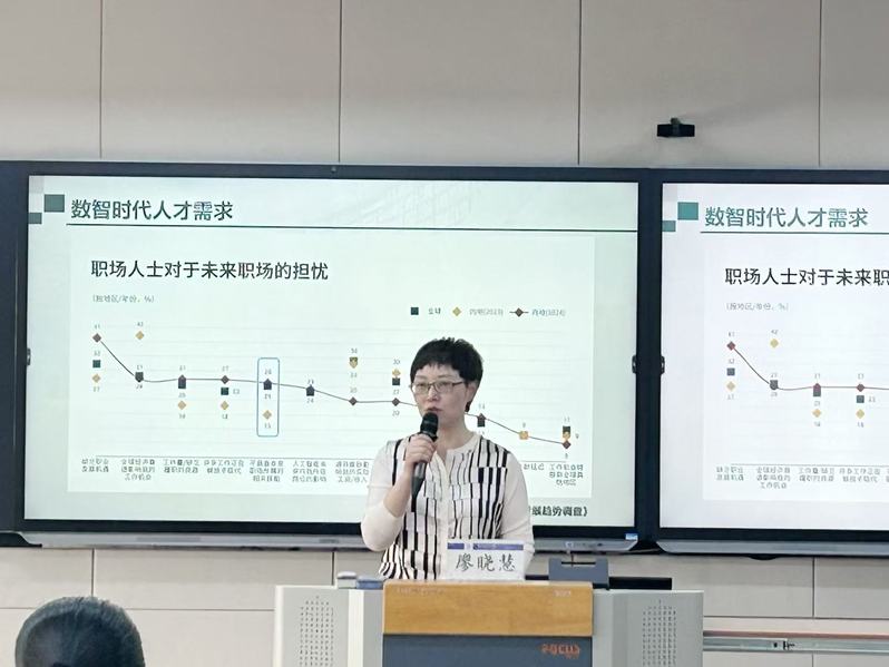 在专题辅导报告阶段,学校邀请全国高校教师教学创新大赛一等奖获得者安徽财经大学廖晓慧老师作《数智驱动:重塑创新课堂生态》专题报告。她以全国教师教学创新大赛为例,结合AI教育前沿案例,从数智赋能教学的理念变革、内容重构、方法革新、模式创新四个方面,剖析了“智能备课、精准教学、个性评价”的创新路径,提出“以学生为中心、以数据为纽带、以场景为突破”的课堂生态重构策略,为参训教师提供了丰富的理论支撑与实践启示。