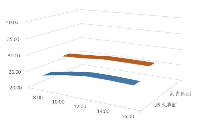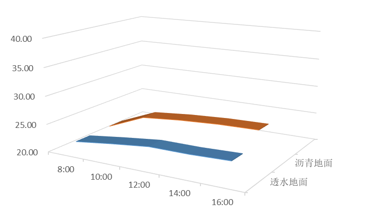 结论:从图中可以明显看出,在夏季降雨天气,透水地面在任何时段均能有效降低温度。透水地面节能效果节能效果合格。
