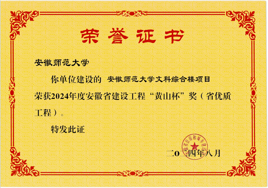 安徽师范大学文科综合楼项目荣获省“黄山杯”奖