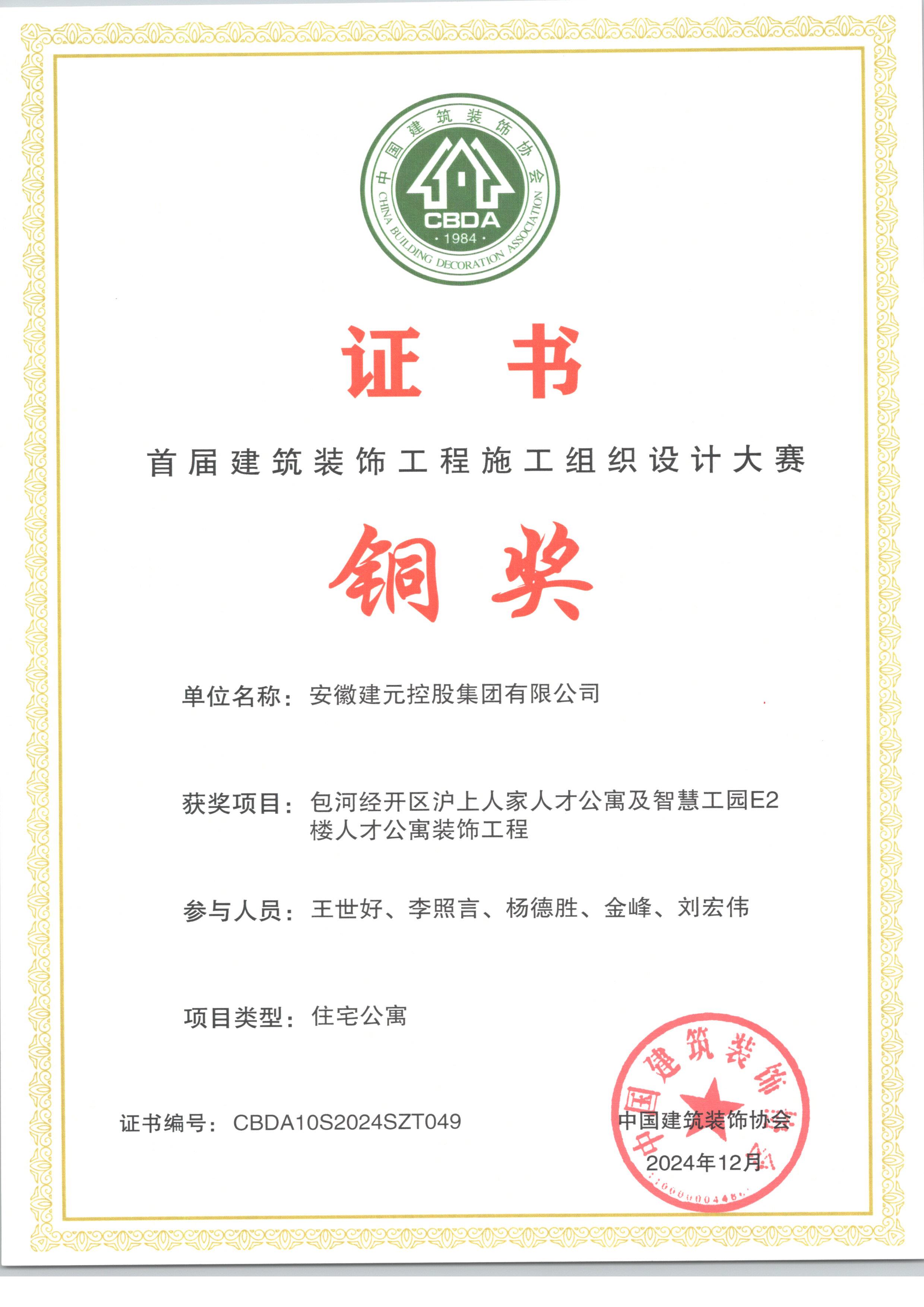 此次获奖不仅是对过往成绩的肯定,更是激励前行的动力。未来,安徽建元控股集团将继续坚守匠心、秉持初心,以更高的标准要求自己,凭借专业实力持续打造更多精品工程,为推动建筑装饰行业的发展贡献自己的力量。(来源:安徽建元控股集团有限公司)