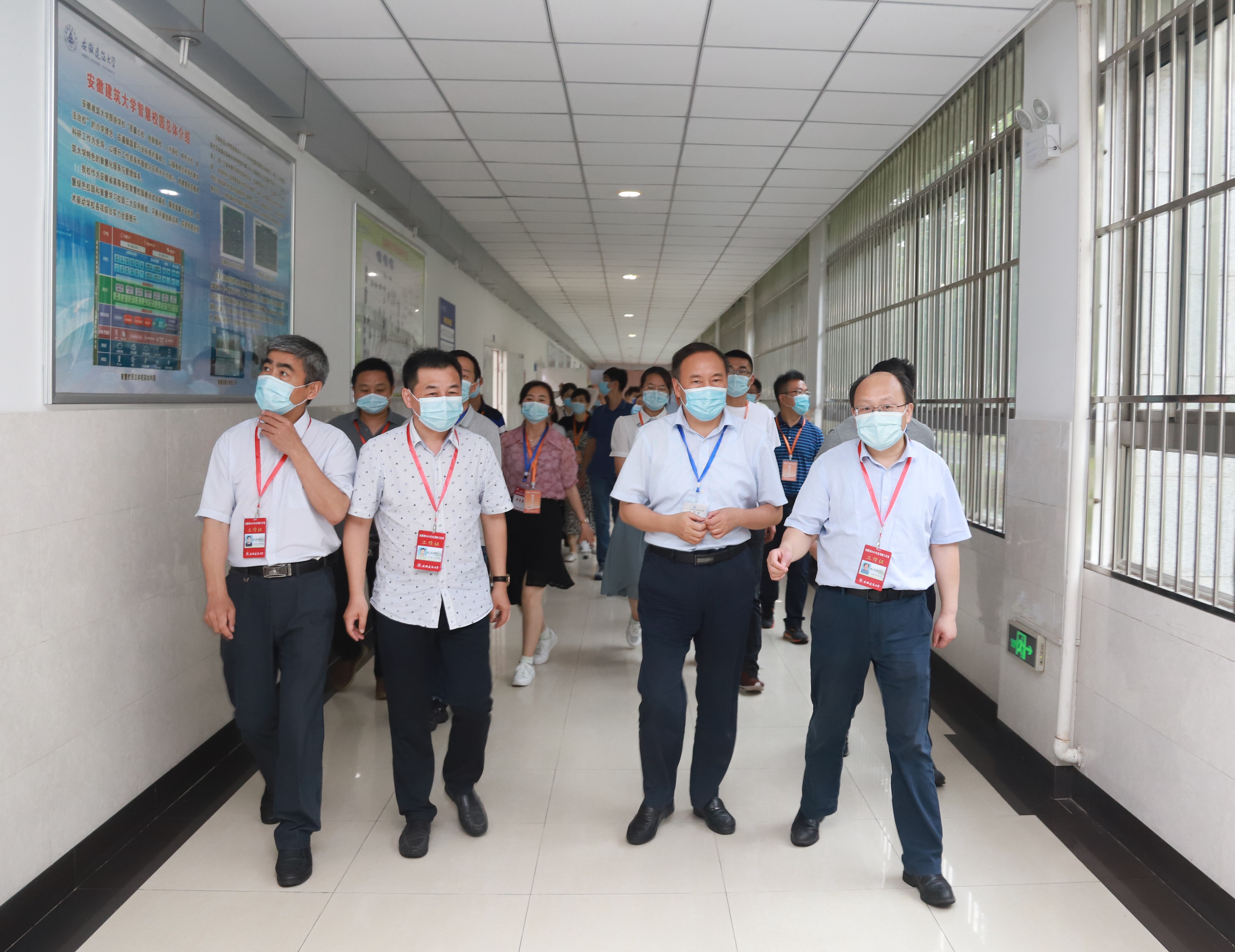 参观活动由省考试院副院长胡雨生带队,学校网评办主任和学科组、专家组等相关负责人向考生和家长们依次介绍了今年网评工作总体情况、组织机构、教师构成、评卷流程及相关岗位职责等信息。参观人员亲身体验了网评入场安检,在工作组引导下有序参观了评卷场所监控系统、评卷机房外围,聆听评卷质量监控、场地疫情防控等举措,零距离体会高考评卷氛围。