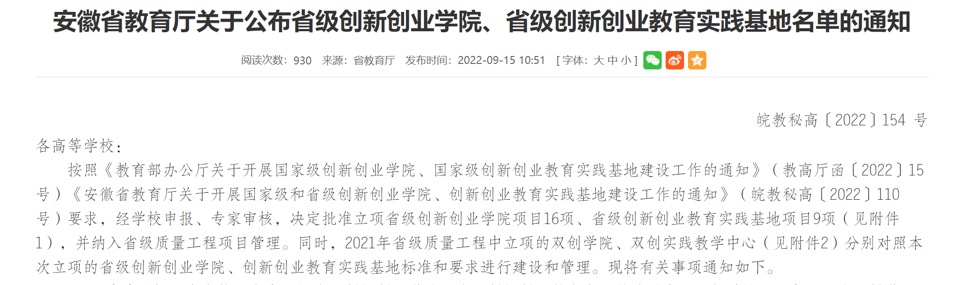 本网讯 近日,省教育厅发布《安徽省教育厅关于公布省级创新创业学院、省级创新创业教育实践基地名单的通知》,beat365官网双创学院、双创实践教学中心项目获得立项。
