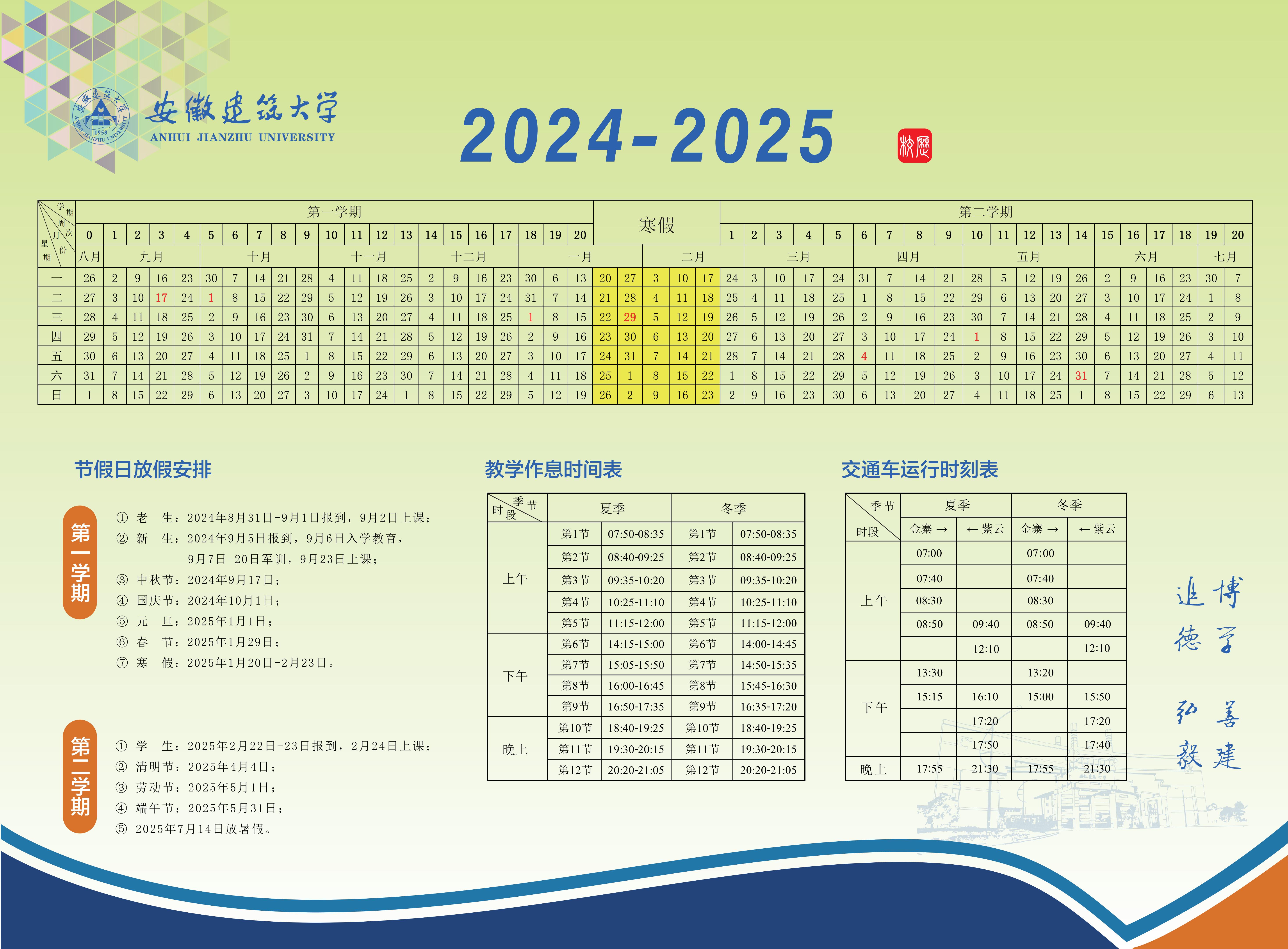 2024-2025学年校历