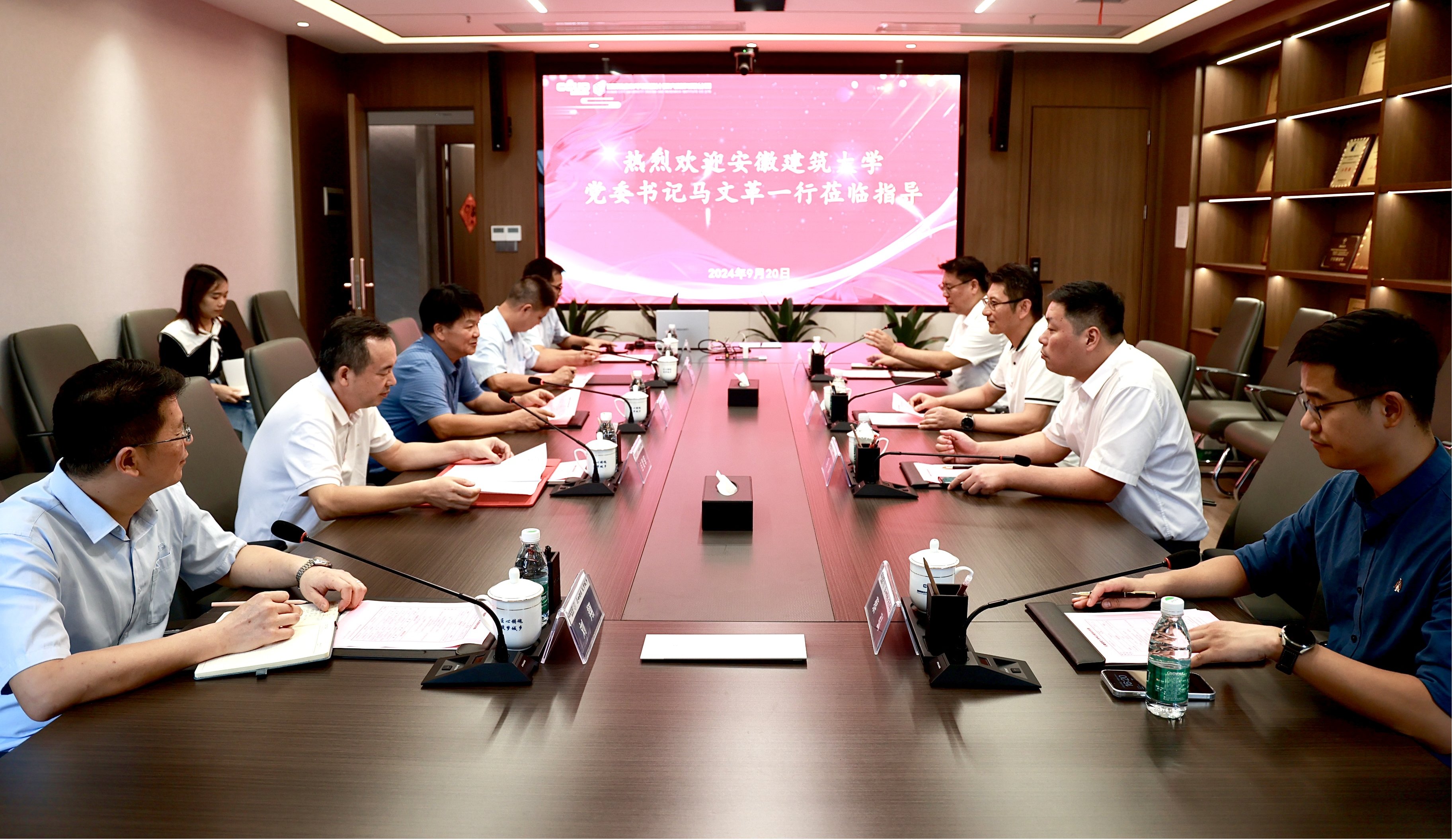 9月20日,马文革一行来到湖南城市学院设计研究院交流学习,与湖南城市学院原党委书记汤放华、校党委委员、党委组织部部长吕贤军、资产经营有限公司党委书记、设计研究院院长李志学等相关部门负责人就校企建设与人才培养等问题进行座谈。