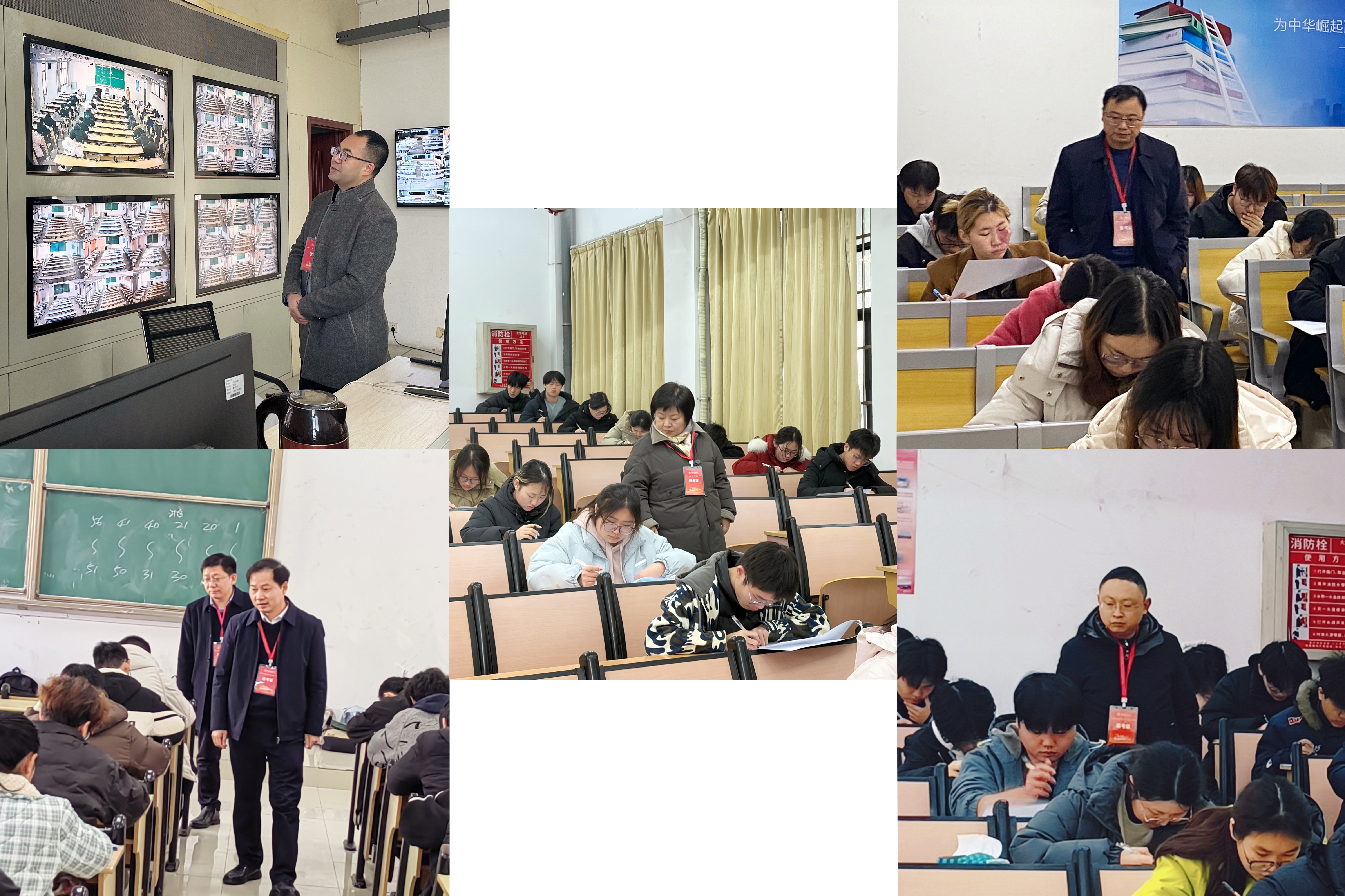 本网讯 1月12日至14日,校领导马文革、蔡国军、李早、杨科、王佐才、黄多能、高跃峰带队,各职能部门负责人协同参与,分组深入金寨路校区、紫云路校区共664个考场,全面开展期末考试巡考工作。本次巡考以“诚信考试”为核心抓手,紧扣“教风学风质量提升年”工作部署,以强化考风考纪建设为目标,通过考前诚信教育引导、考中精准巡查督导、考后复盘整改提升的全链条工作举措,切实保障考试公平公正,将诚信教育贯穿育人全过程,彰显“以考促教、以考促学”的育人初心。