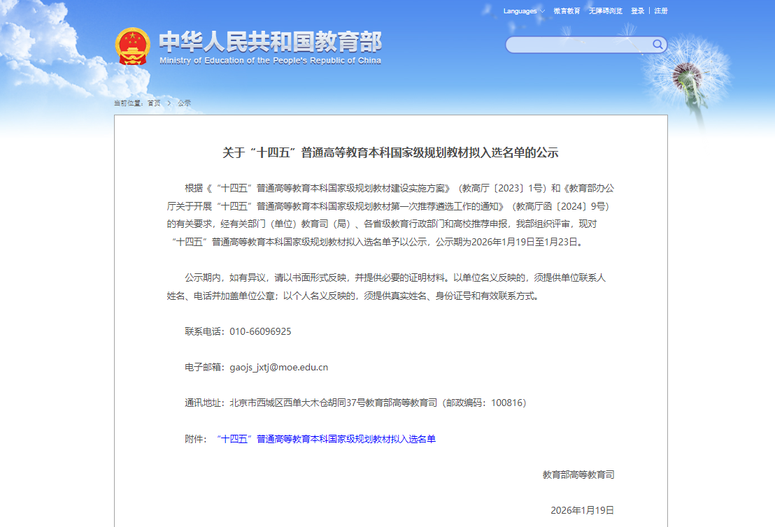 本网讯 1月19日,教育部对“十四五”普通高等教育本科国家级规划教材拟入选名单进行公示,beat365在线唯一官网方潜生教授主编的《建筑电气(第三版)》成功入选,标志着学校在国家级高质量教材建设方面取得新的重要突破。