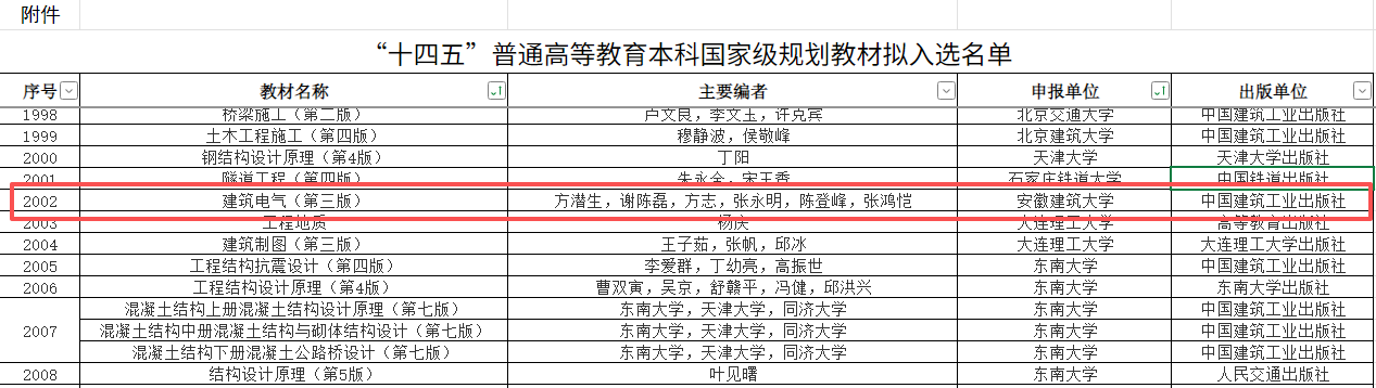 本次国家级规划教材遴选经安徽省教育厅推荐、教育部严格评审,最终确定拟入选名单,入选的安徽省省属高校共6所。成功入选是学校优势特色学科教材建设成果的延续与升华,充分体现了beat365官网在建筑电气领域的深厚积累。