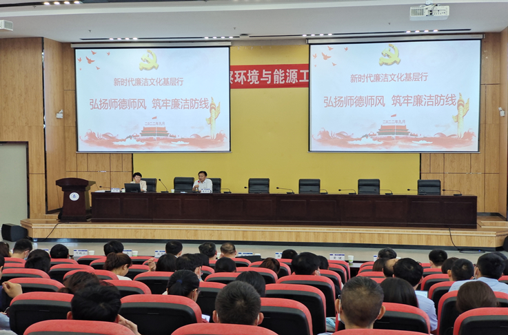 本网讯 为进一步增强学院教职工廉洁自律意识,加强师德师风建设,9月14日,环能学院邀请学校纪委综合管理办公室主任王渊为学院全体教职工开展“弘扬师德师风 筑牢廉洁防线”为主题的新时代廉洁文化基层行宣讲活动。宣讲会由学院党委书记戴前宏主持。
