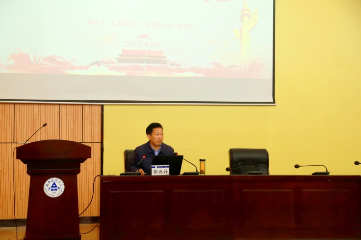本网讯 为深入推进廉洁校园建设,3月9日,纪委副书记、纪委办公室主任张兆许受邀给2023年第一期党员发展对象培训班作了《青春有为廉洁有我,做新时代廉洁修身的大学生》的讲座。