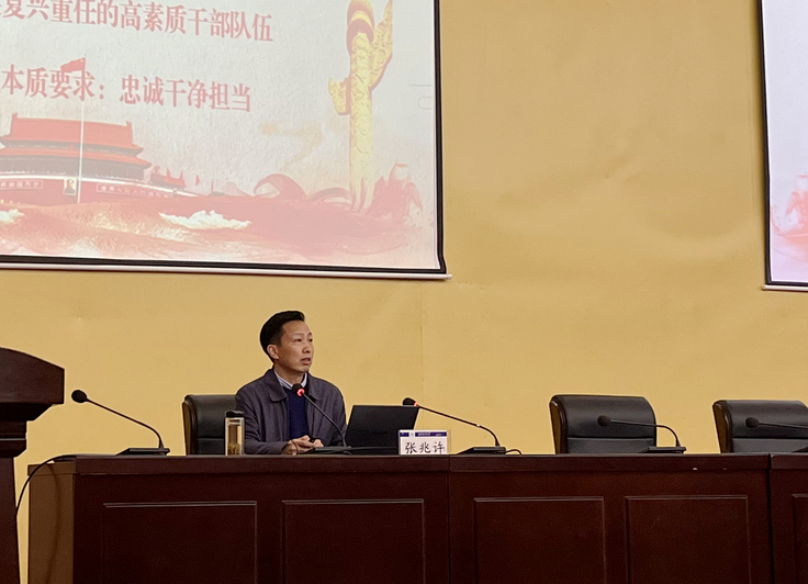 本网讯 4月6日,学校对2022-2023年新提任处(科)级干部进行培训,邀请校纪委副书记、纪委办公室主任张兆许做党风廉政教育专题报告。来自学校各单位2022-2023年新提任处(科)级干部共计90人参加了本次培训。
