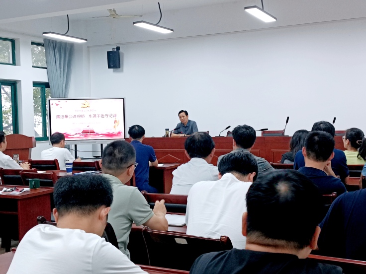 张兆许以《廉洁奉公讲规矩,永葆本色守纪律》为题,从厘清站位、分析形势、警示案例三个方面深入探讨分析腐败对个人、学校和社会的严重危害,教育引导党员领导干部和广大教职工以案为警、以案为鉴、以案明纪,树牢红色底线,筑牢拒腐防变思想防线,厚植廉洁文化根基。