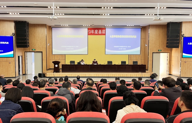 本网讯 为进一步规范学校招投标工作,提升招投标业务能力和管理水平,11月8日,学校纪委在徽风楼2楼报告厅召开招投标相关业务工作培训会。省教育厅采购监管与审计处处长、一级调研员廖文秋教授到会作题为《从监审视角看高校招标采购风险》的专题报告,校党委常委、纪委书记、监察专员王玉兰主持会议,校纪委委员、各学院(部、中心)院长(主任)、各职能部门主要负责人、各基层纪委书记、后勤管理处副科级以上干部、招标办、国资处及纪委办全体工作人员参加会议。