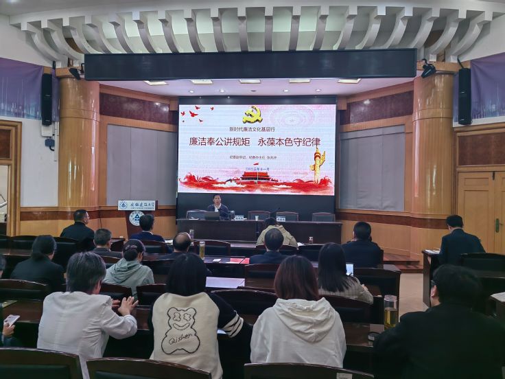 张兆许以《廉洁奉公讲规矩,永葆本色守纪律》为题,从厘清站位、分析形势、警示案例三个方面深入探讨分析腐败对个人、学校和社会的严重危害,并结合高校教职工违纪违法的警示案例剖析,揭示违纪违法问题的思想根源,强调广大党员干部要从身边的警示案例中吸取教训,树牢红色底线,筑牢拒腐防变思想防线。