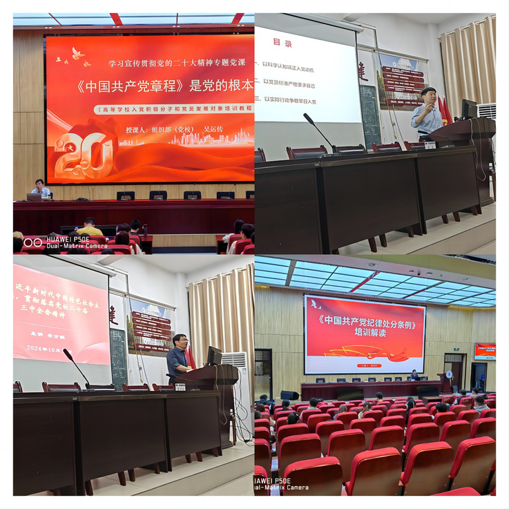为推深做实大学生入党积极分子示范培训,学校党校按照“一统四有五必”要求,精心谋划培训方案,科学设置培训课程,经省委教育工委、省委组织部审核把关后,认真组织实施示范班教育培训工作。培训内容涉及专题讲座、案例教学、视频教学、现场教学、分组研讨、交流总结等环节。专题讲座聚焦《高等学校入党积极分子和党员发展对象培训教程》,邀请组织部(党校)、统战部、马克思主义学院、纪委办公室等单位负责人,分别讲授“党章是党的根本大法”“端正入党动机争取早日加入中国共产党”“中国共产党党员的条件、义务和权利”“深入学习习近平新时代中国特色社会主义思想和党的二十届三中全会精神”“中国共产党纪律处分条例解读”等课程。在培训班结业式,及时跟进学习习近平总书记考察安徽重要讲话精神。