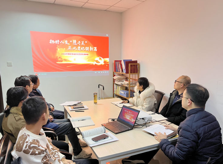 本网讯 为强化支部党员的纪律观念和规矩意识,12月27日,机关第一党委纪委办巡察办党支部在徽风楼1905会议室,集体观看2024年高校党组织示范微党课第二期《党史中的纪律建设》。