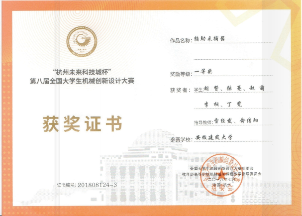 2008年以来,本专业学生在全国大学生机械创新设计大赛、全国大学生节能减排社会实践与科技竞赛、挑战杯、全国大学生工程训练综合能力竞赛、全国大学生过程装备实践与创新大赛、安徽省科普创新创意大赛等科技竞赛中获得省级以上奖项50余项。