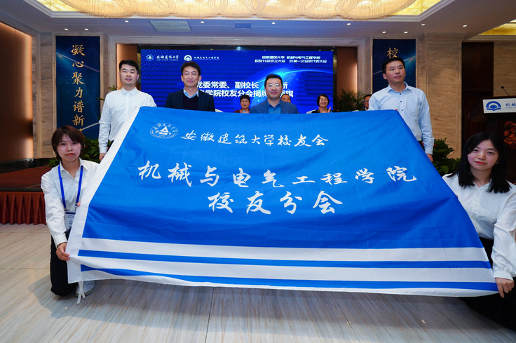 张亚新、叶少宝为机械与电气工程学院校友分会揭牌,张亚新为校友分会授旗。校友分会会长、副会长、秘书长上台合影留恋。