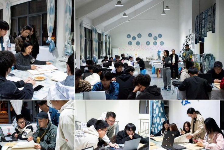 参观环节,学生们前往屏山、卢村、西递、南屏等地的徽派建筑、古民居以及非遗工艺的传承基地,领略了徽州地域的自然风光,深入了解了徽州地区独特的民俗与工艺文化,感受到了非遗技艺的精湛与传统手工艺中的工匠精神,为后续的设计创作积累了丰富的素材。