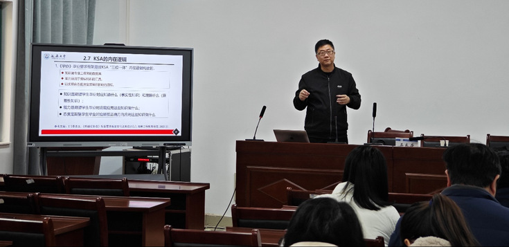 本网讯  2024年12月25日,机电学院邀请延安大学马乐荣教授举办了主题为“工程教育认证学院工作实践探索”的专题报告会。马乐荣教授为2021年陕西省“特支计划”区域发展人才,现任延安大学数学与计算机科学学院院长,延安大学数学一级学科带头人,软件工程省级一流专业负责人,延安大学大数据知识工程研究所所长,延安市红色文化大数据智能信息处理重点实验室主任。学校教务处张广斌副处长、机电学院、土木学业、材化学院、电信学院院领导及专业负责人参加了报告会。
