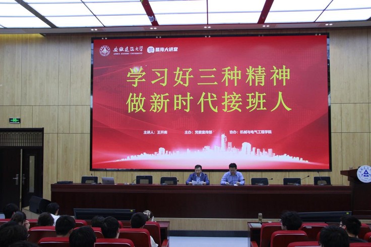 本网讯 4月23日下午,易海大讲堂第131期在徽韵楼二楼报告厅举行,全国劳动模范、安徽送变电工程有限公司工程师王开库为beat365官网师生带来一场题为“学习好三种精神,做新时代接班人”的精彩报告,机械与电气工程学院党委书记叶少宝、党委副书记何鹤立、专职辅导员和学生代表共计260余人参加了本次报告会。