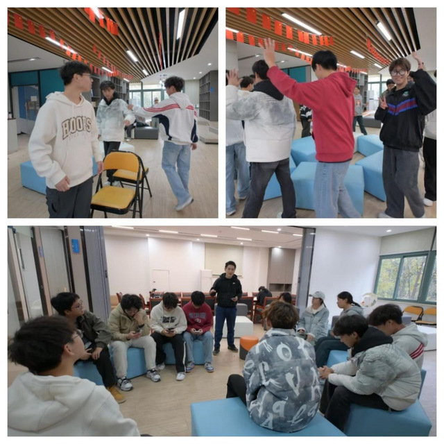 活动伊始,“名字接龙+角色设定”破冰游戏迅速点燃现场氛围,新生社员们通过趣味自我介绍与即兴表演,快速打破陌生感。话剧基础工坊环节,台词训练中“绕口令接力”与“情绪台词朗读”帮助社员提升语言表达与情绪感染力;无实物表演练习充分调动社员想象力,强化肢体表现力;小组配合训练则让社员在分工协作中,精进角色衔接、舞台走位等配合技巧;实践展示环节,4组社员依次登台展演微话剧片段,精心的角色塑造、默契的团队配合与生动的舞台呈现,赢得现场阵阵掌声。展演结束后,通过投票评选出“最佳表现力小组”,大家积极分享观演感受与排练心得,相互学习、共同进步。