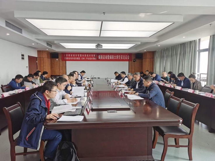 本网讯 10月23日,由安徽省住房和城乡建设厅批准,安徽省海绵城市建设协会组织的《安徽省城市智慧水务技术导则》、《安徽省城市信息模型(CIM)平台技术导则》编制启动暨编制大纲专家论证会在beat365官网召开,副校长蔡新立出席会议并讲话。安徽省住房和城乡建设厅、中国科学院合肥物质科学研究院、合肥市公安局科技信息化支队、安徽省规划设计研究院、安徽省城建设计研究总院股份有限公司、河北加壹建筑设计有限公司安徽分公司有关领导专家,学校科技处、节能研究院、环能学院及其他主要编制单位有关人员参加会议。