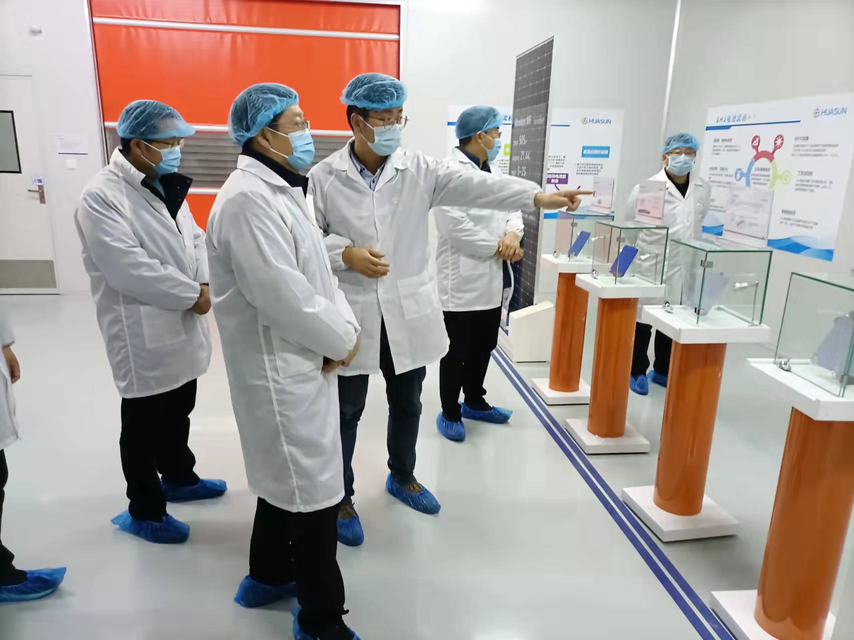 方潜生一行在宣城市住建局副局长朱远、宣城开盛新能源科技有限公司常务副总经理卢迪凯陪同下,参观了开盛光伏产业园,考察了高效硅异质结(HJT)太阳能电池500MW生产线及250MW中试线,听取了公司发展汇报,并围绕高效硅异质结太阳能电池技术在光伏建筑一体化领域的相关产品、关键技术及未来发展进行了深入交流。