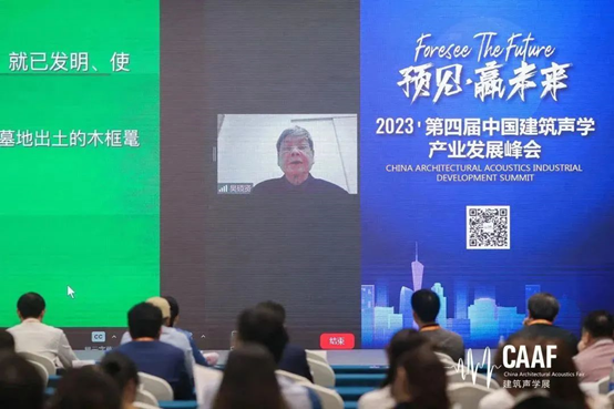 中国科学院院士吴硕贤通过线上连线,首先为现场带来《重视听觉关怀,改善人居声环境》的主旨报告。噪声控制学最重要的任务,就是要创造一个较为安静的人居环境。通过做好建筑物的隔声设计,来取得较安静的室内声环境。希望通过此次的分享大家更重视科学听觉环境。