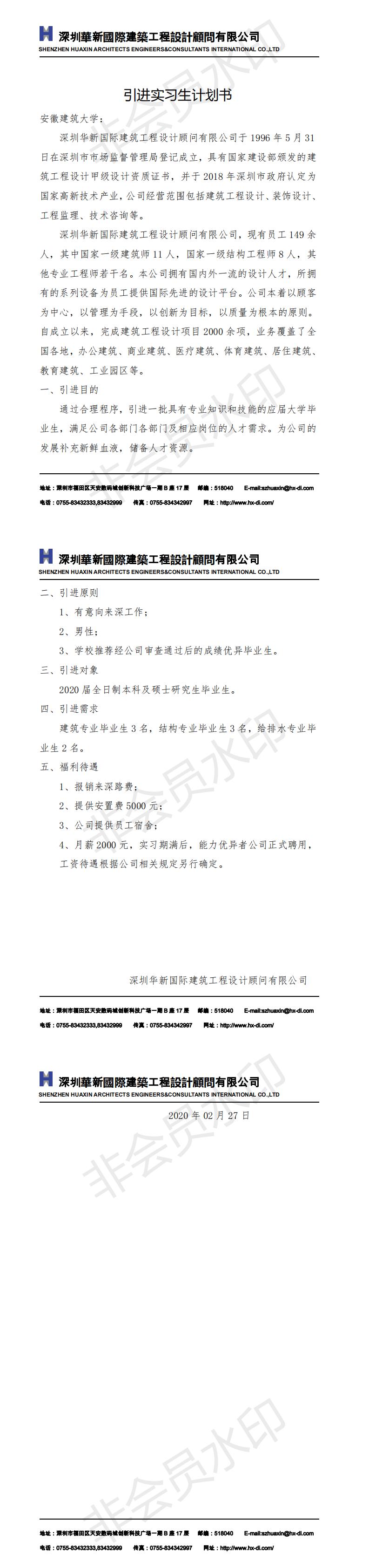 2020招聘信息:深圳华新国际建筑工程设计顾问有限公司