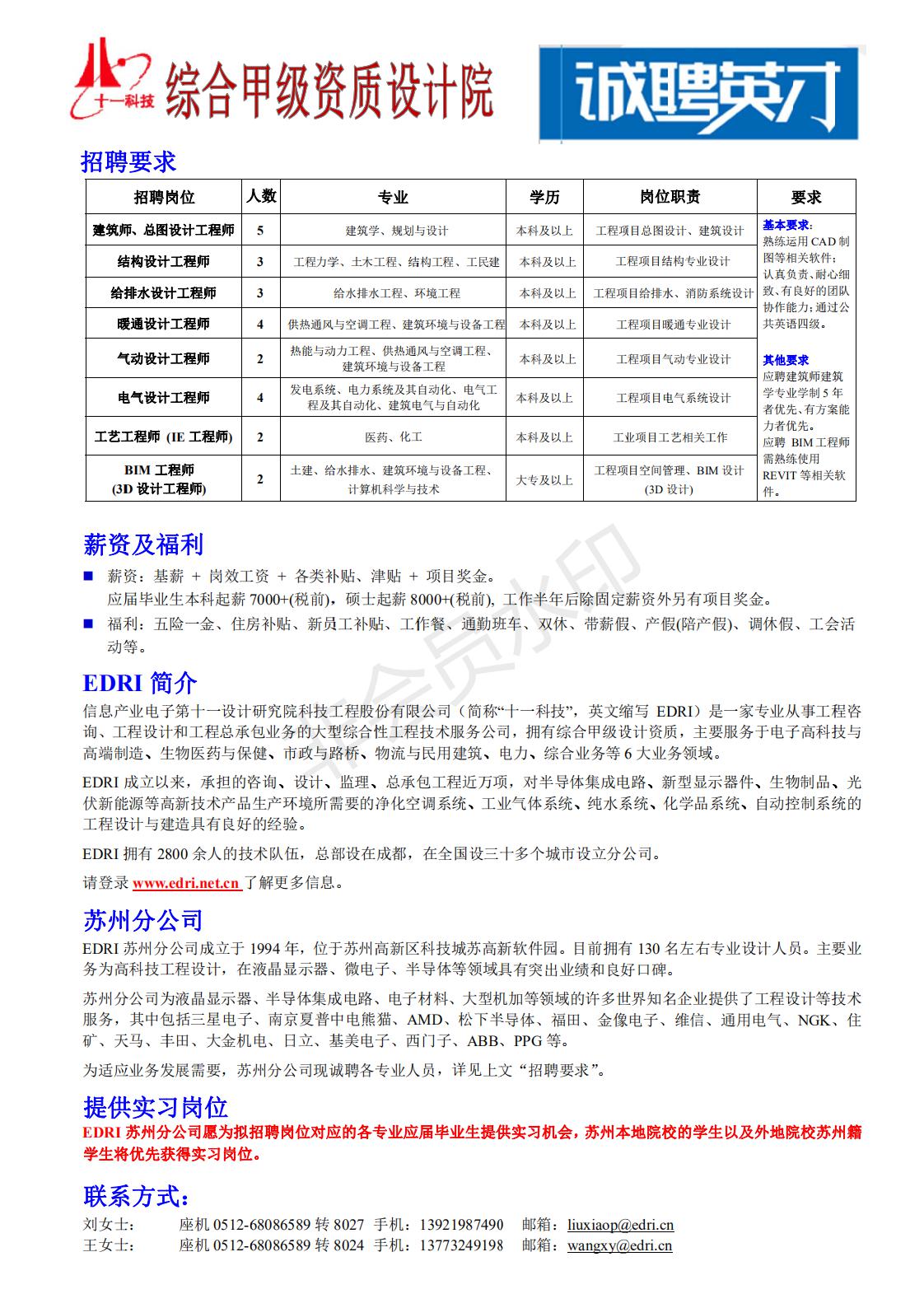 2020招聘信息:十一科技 EDRI苏州分公司招聘公告