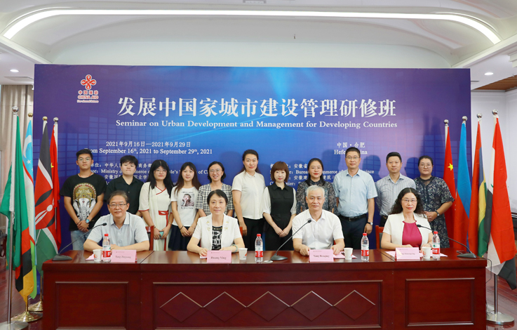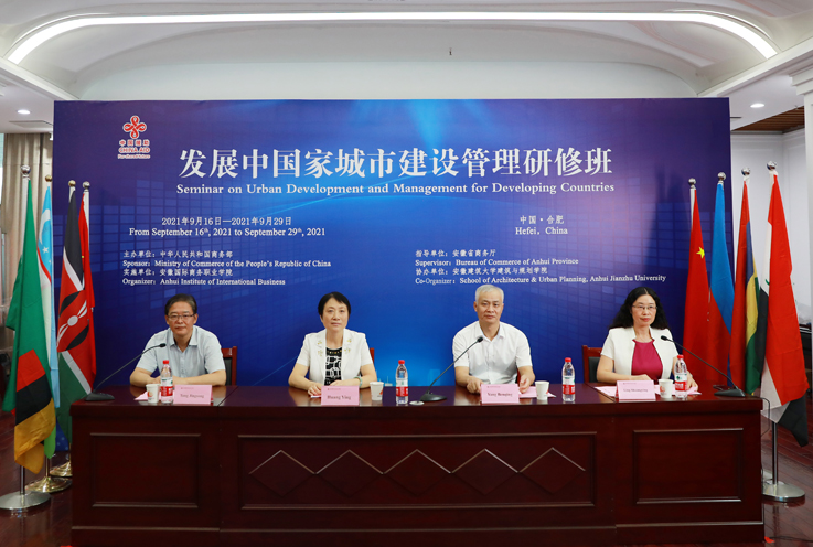 本网讯 9月16日,由中华人民共和国商务部主办、安徽省商务厅指导、安徽国际商务职业学院承办、beat365在线唯一官网建筑与规划学院协办的发展中国家城市建设管理研修班在合肥顺利开班。由于疫情防控需要,本次研修班采取在线形式进行。省商务厅党组成员、副厅长黄英,省商务厅党组成员、副厅长、安徽国际商务职业学院党委书记杨本清,beat365在线唯一官网建筑与规划学院党委书记唐劲松、副院长王薇等,以及来自6个国家的学员出席开班仪式。