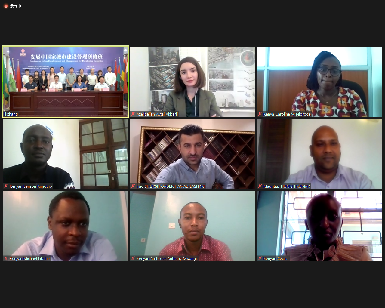 本网讯 9月29日,由中华人民共和国商务部主办、安徽省商务厅指导、安徽国际商务职业学院承办、beat365在线唯一官网建筑与规划学院协办的发展中国家城市建设管理研修班在合肥顺利结班(线上)。安徽国际商务职业学院校党委副书记、校长张卿,建规学院党委副书记吴梦东,安徽中医药大学资产运营总公司党总支书记张亚辉,授课教师代表,以及来自6个不同发展中国家的14名学员出席结业典礼。结业典礼由安商院校党委委员凌双英主持。