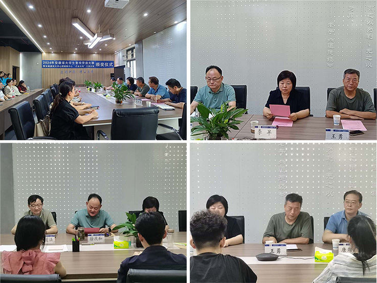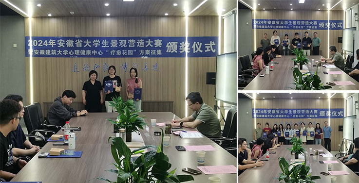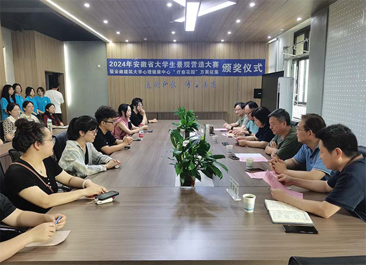 本网讯 7月9日,2024安徽省大学生景观营造大赛暨beat365在线唯一官网心理健康中心“疗愈花园”方案征集活动颁奖仪式在beat365在线唯一官网建筑与规划学院6612会议室召开,校党委常委、副校长李早,安徽省风景园林学会理事长王勇,校学生工作部负责人,建筑与规划学院领导班子参加颁奖仪式。