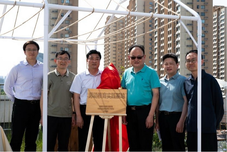 校党委常委、副校长李早实地参观了“疗愈花园”营造成果,详细了解学生团队在方案创作、装置搭建、维护管理等环节的实践细节,并指出要持续整合相关资源,将屋顶花园打造为“劳动育人+生态低碳”的示范场景。党委学生工作部部长徐庆和、后勤管理处处长唐黎共同为劳动教育实践基地揭牌。