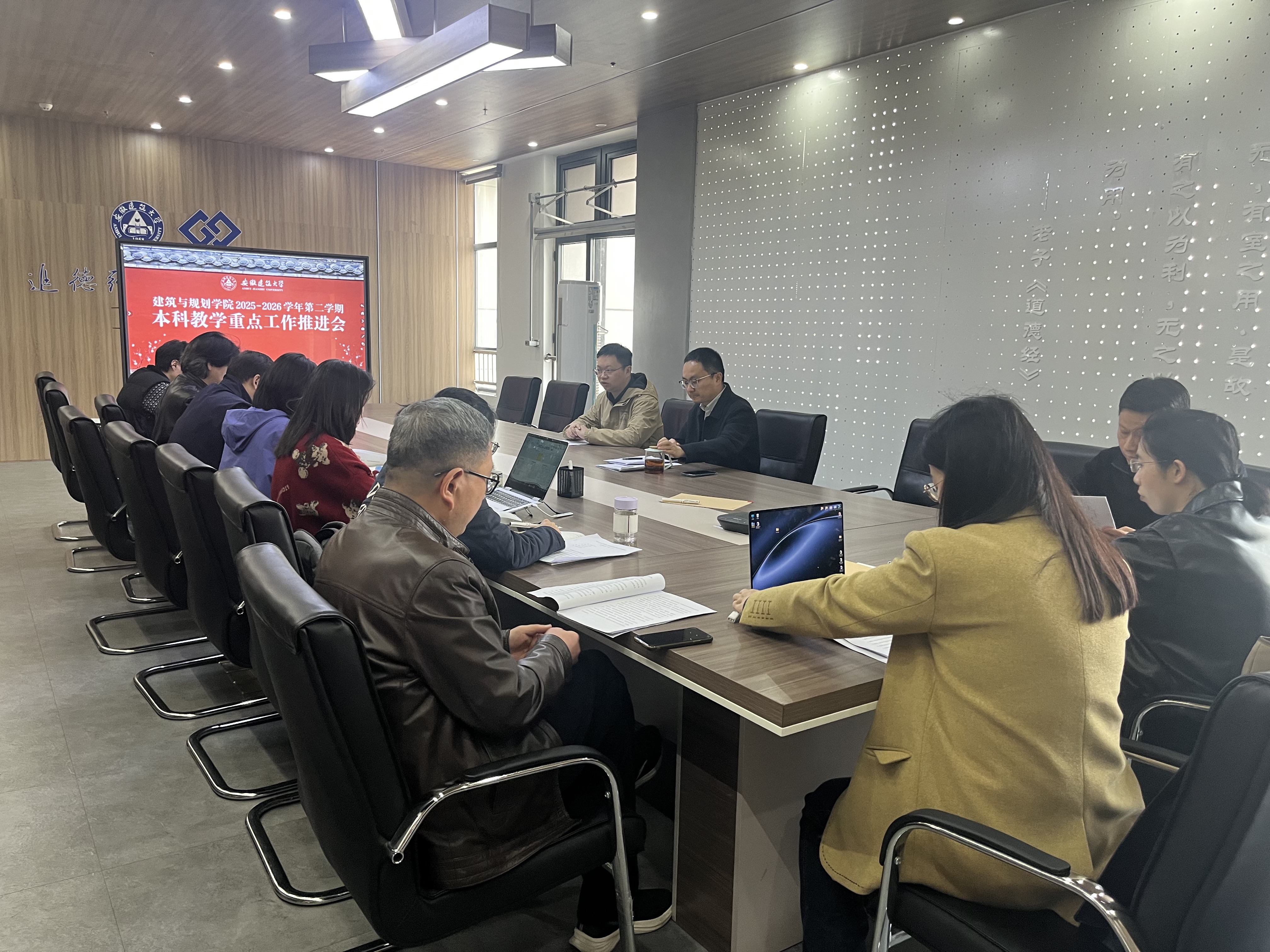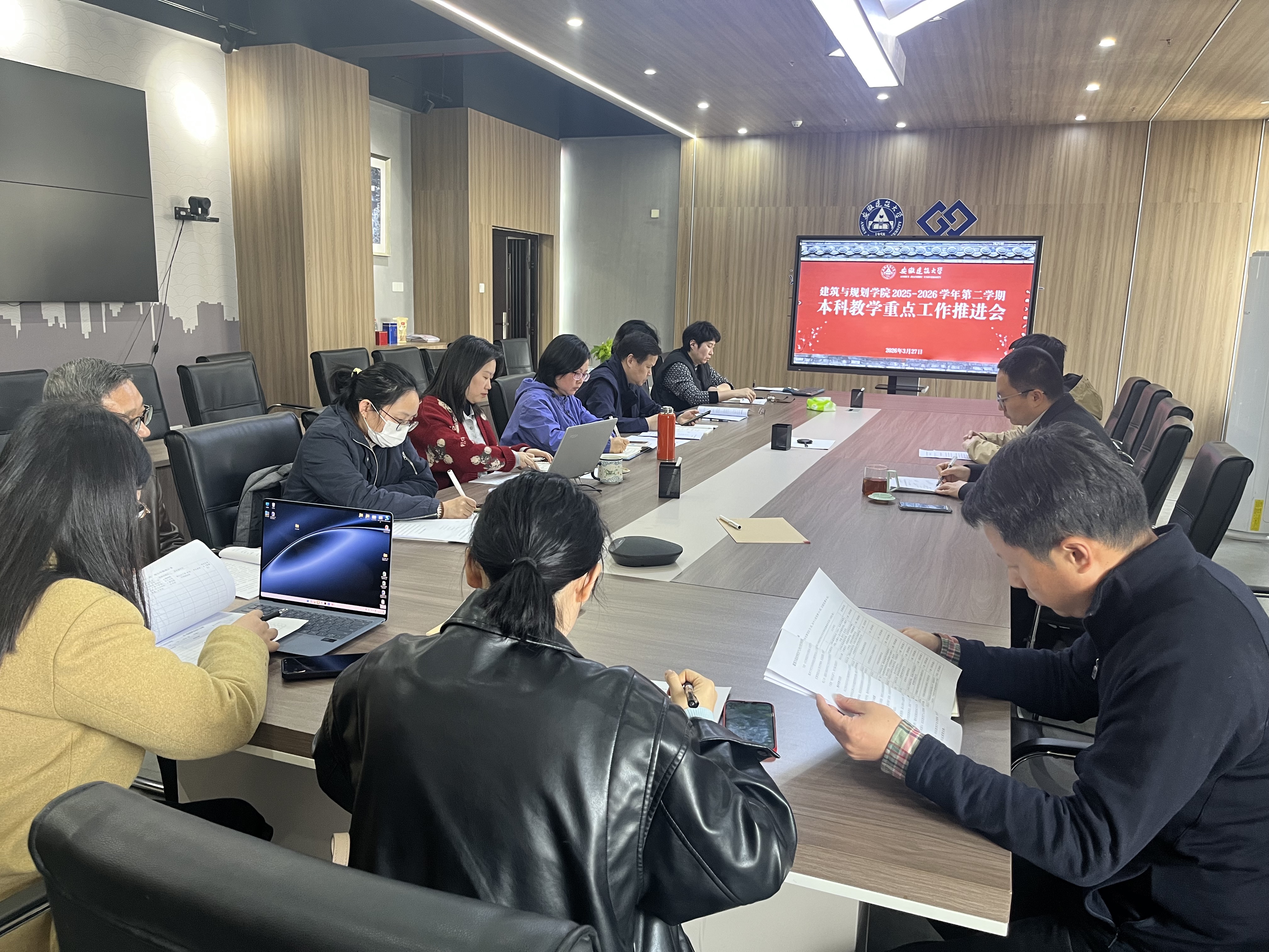 本网讯 3月27日下午,建筑与规划学院在紫云路校区徽韵楼6612会议室召开2025-2026学年第二学期本科教学重点工作推进会。学院党委副书记、院长顾康康,党委副书记、纪委书记刘浩出席会议,会议由副院长聂玮主持。建筑系、规划系、景观系及建筑基础部主任、副主任,教学督导组及全体教学管理人员参加了会议。