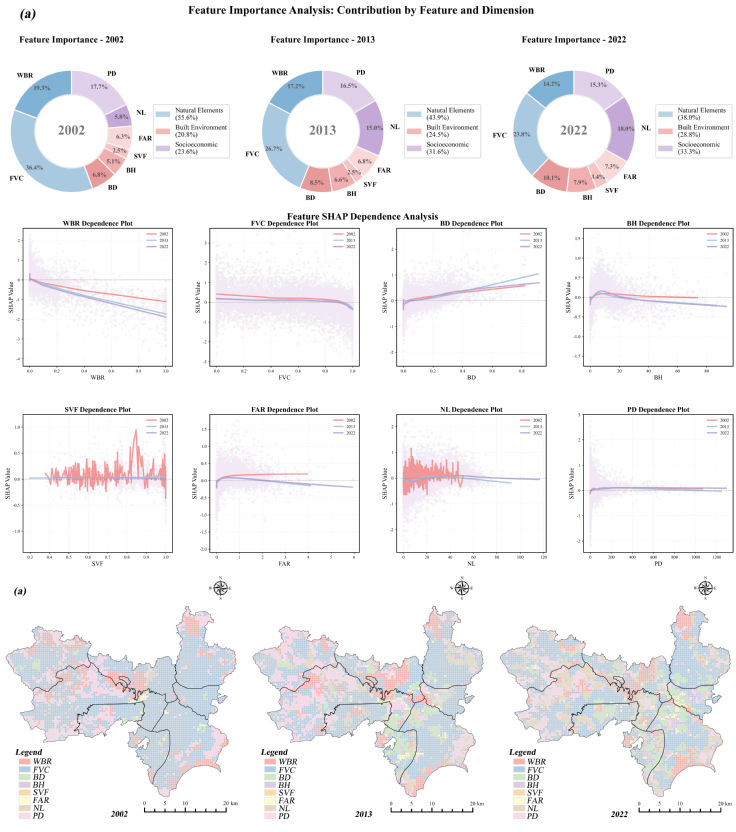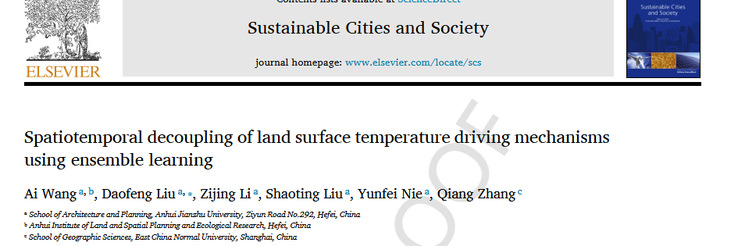 本网讯近日,beat365在线唯一官网建筑与规划学院教师在城乡规划领域顶级期刊《Sustainable Cities and Society》(中科院一区Top期刊,2025年影响因子12.0)上发表了题为《Spatiotemporal Decoupling of Land Surface Temperature Driving Mechanisms Using Ensemble Learning》的研究论文。教师王爱为论文第一作者,2023级硕士研究生刘道烽为通讯作者,beat365在线唯一官网为第一完成单位。