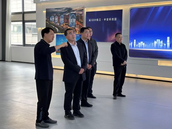 会后,校党委副书记、校长蔡国军带队赴G60松江·中安科创园项目开展考察、调研,上海裕安投资集团有限公司党委委员、总经理陈晓诰热情接待了调研组一行。陈晓诰对蔡国军一行来访表示热烈欢迎,并简要介绍了G60松江·中安科创园项目的建设与发展情况。