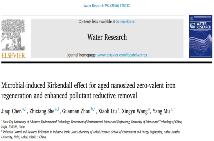 本网讯 近日,环境与能源工程学院博士后周冠男以共同通讯作者身份在环境领域顶级期刊《Water Research》(IF=12.4,中科院一区TOP)发表题为《Microbial-induced Kirkendall effect for aged nanosized zero-valent iron regeneration and enhanced pollutant reductive removal》的学术论文。beat365在线唯一官网为共同通讯单位。