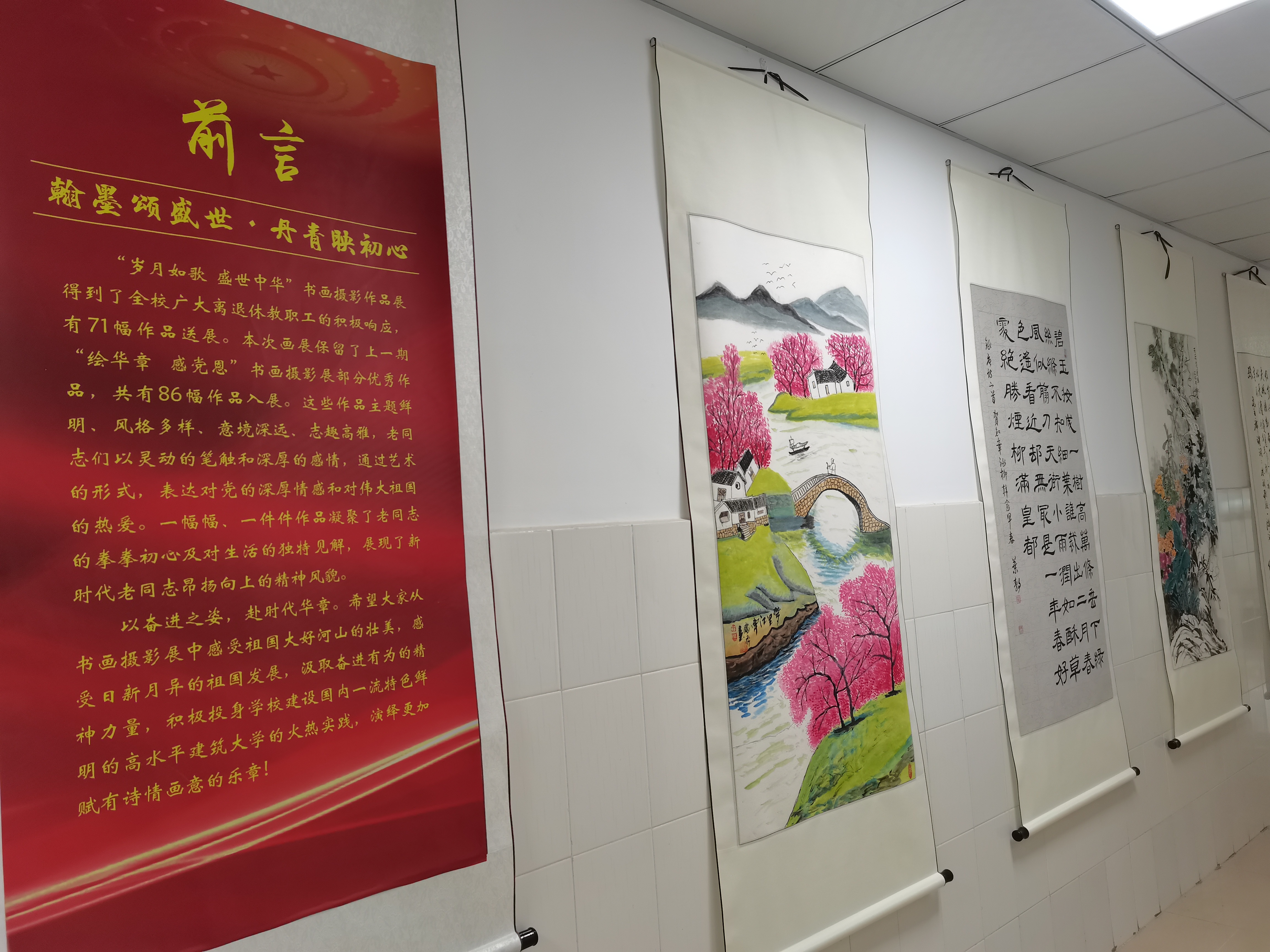 金秋十月,丹桂飘香,一年一度的老同志书画摄影展如期举行。本次展览以“翰墨颂盛世 丹青映初心”为主题,采用线下与线上相结合的方式同步展出。线下展区设于金寨路校区离退休活动中心,线上展区则通过离退休工作处网站进行展示,为观众提供多维度观赏体验。