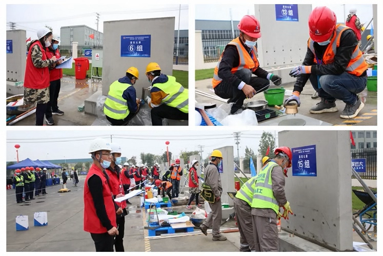 灌浆施工环节是装配式混凝土施工过程中的重要环节,是决定结构质量的关键技术,在灌浆赛区,每组两人按照灌浆流程和工艺,一步一步认真完成预制构件灌浆料的配制、分仓、灌浆等操作,一个眼神,一个手势,两个选手默契配合,在最短的时间完成灌浆规程。