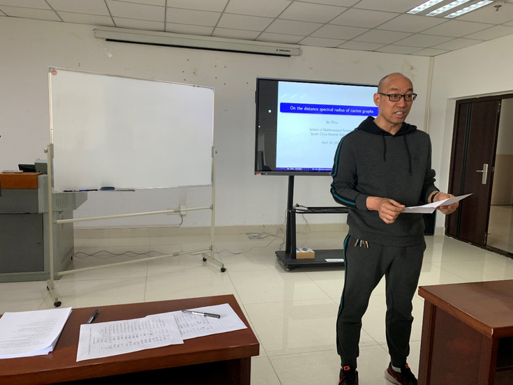 副院长刘华勇教授首先作开幕致辞,对来自安徽大学和中科大的教师、博士后和博士生及其它参会代表表示诚挚的欢迎,感谢参会专家们对beat365在线唯一官网数理学院的信任和支持。随后华南师范大学周波教授、安徽大学江宇博士、河北地质大学侯利航副教授(线上)、中科大Brhane Gebremichel博士后和熊彦禛博士后分别就代数组合领域最新研究成果和进展作了邀请报告。