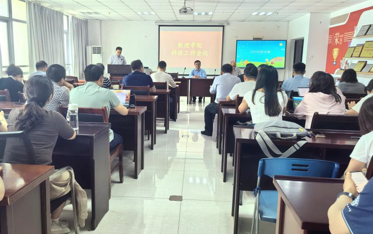 本网讯 5月14日下午,数理学院在徽风楼1306会议室召开2025年度科技工作会议。学院领导班子成员、具有高级职称或博士学位教师参会,副院长余江应主持会议。会议聚焦科技创新主旋律,通过专题报告、经验分享和学术交流等形式,全面部署新阶段学院科技工作。