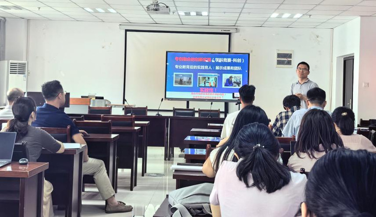 在经验交流环节,尤玉伟、杨冉两位教师代表分别结合国家自然科学基金申报、高水平论文发表等经历作专题分享。教务处副处长丁超教授以“指导教师视角下的理科生创新实践”为题,从双创教育视角探讨科教融合新范式。学院党委书记胡燕青作总结发言,他指出,要紧扣数理学科“基础性、交叉性、工具性”特点,持续深化“数理+”战略,充分发挥数理学科“基础+应用”的双重优势,在基础研究、交叉学科等特色领域形成核心竞争力。