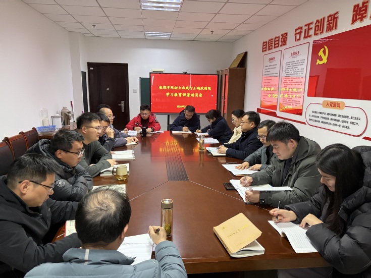 胡燕青对学院开展树立和践行正确政绩观学习教育作了动员部署。他要求,一要统一思想,提高站位,深刻认识开展学习教育的重大意义。这是筑牢信仰之基、把稳思想之舵的“必修课”,也是推动高质量发展、服务“十五五”大局的“动员令”,更是深化自我革命、从严管党治党的“攻坚仗”;二要聚焦重点,把握要求,精准落实学习教育各项任务。要突出“深学”,在理论武装中筑牢根本,突出“真改”,在动真碰硬中解决问题,突出“长立”,在制度建设上巩固成果,突出“开门”,在群众参与中检验成效,突出“细查”,在对标检视中找准差距;三要强化担当,改进作风,确保学习教育取得扎实成效。要强化责任落实、分类指导、宣传引导和作风保障;四要知行合一,务求实效,以正确政绩观引领高质量发展。要在贯彻新发展理念上见行见效,在创造高品质生活上用心用情,在锻造高素质队伍上选贤任能。(作者:吴钰濛;一审:林浩东;二审:张毅;三审:胡燕青)