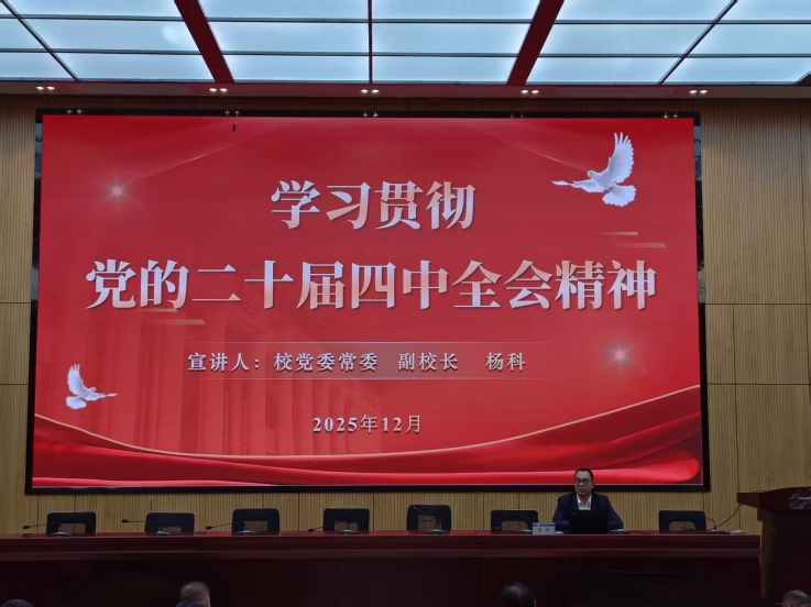 本网讯 为深入学习宣传贯彻党的二十届四中全会精神,切实把广大师生的思想和行动统一到党中央决策部署上来,根据校党委统一安排,12月30日下午,学校党委常委、副校长杨科深入学院开展学习贯彻党的二十届四中全会精神宣讲。学院全体教职工及学生党员近200人参会。