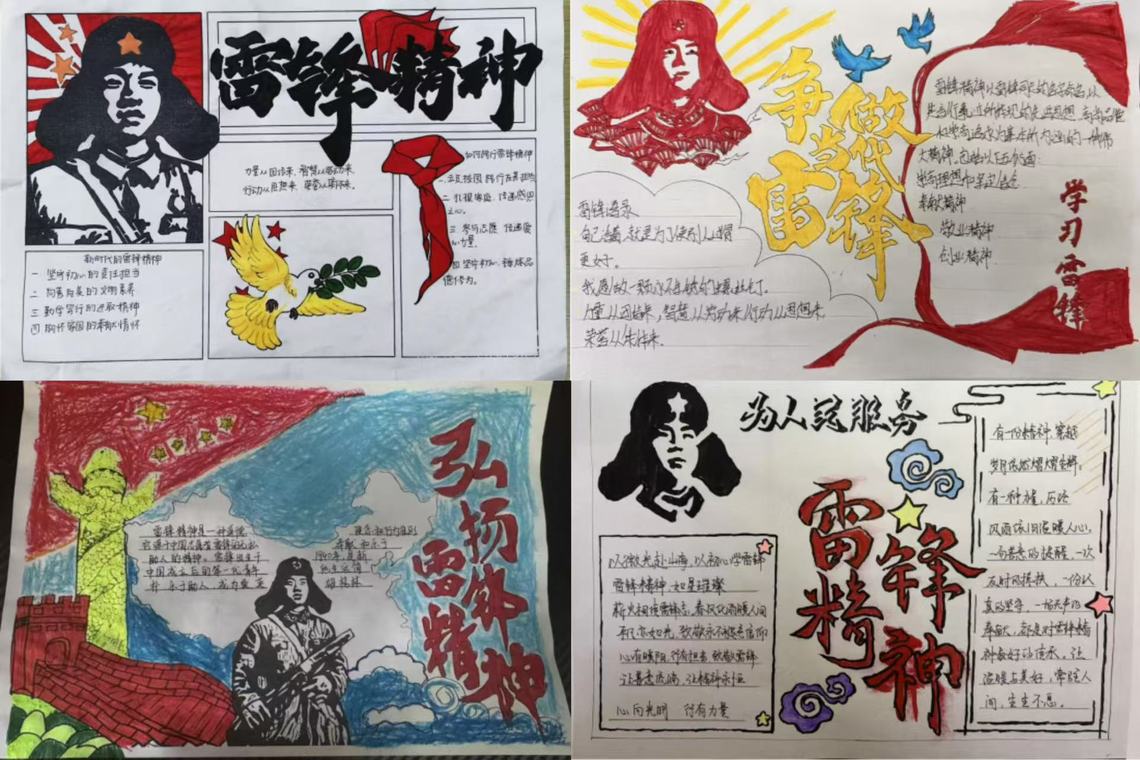 为引导全体同学树立正确的世界观、人生观、价值观,学院组织同学们以手抄报这一校园里最具感染力、最贴近学生生活的宣传载体,让雷锋精神扎根校园、浸润心灵。活动以“图文结合、寓教于乐”为核心原则,鼓励同学们充分发挥创意与才华,将雷锋同志的感人事迹、雷锋精神的深刻内涵,通过生动的文字、鲜活的画面呈现出来,让每一块手抄报都成为传播雷锋精神的“小阵地”,着力营造“人人学雷锋、时时学雷锋、处处学雷锋”的浓厚校园氛围。