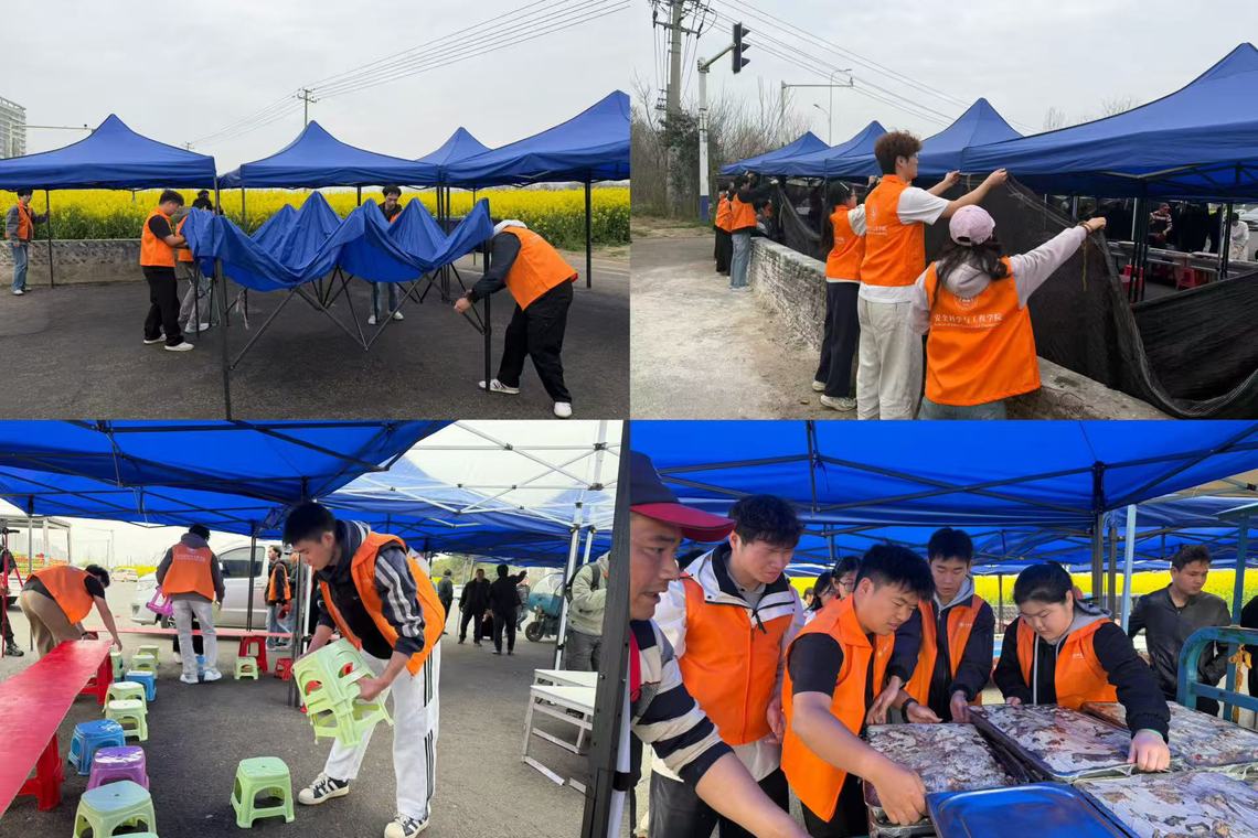 “安徽盒饭姐”王荣亚十年来坚守初心,以10元管饱、35个菜随便吃的实惠饭菜温暖着周边农民工及市民,3月27日,学院志愿者走进其摊点,开展志愿帮扶活动。志愿者们提前抵达摊点,协助盒饭姐搭建遮阳帐篷、摆放桌椅,整理菜品陈列区。用实际行动支持这份朴素的善意,让雷锋精神在烟火气中传递温暖与力量。