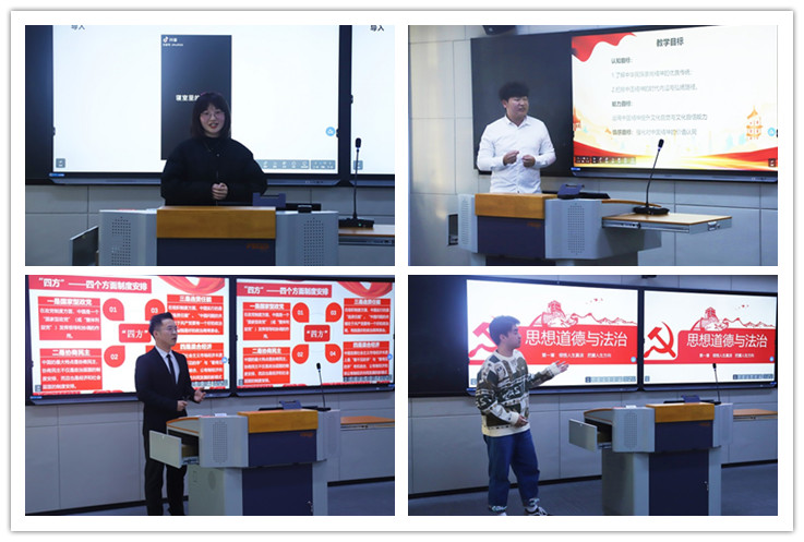 决赛中,8位同学就“拒绝内卷”、“思想的铁幕——西方文化霸权主义”、“中国模式——文明型国家的崛起”、“中国精神的时代内涵和弘扬途径”、“传承红色基因,赓续红色血脉”、“诚信在当代的意义”、“领悟人生真谛,把握人生方向”、“国乃一生所爱”等为主题,开展了形式多样的现场教学展示。各参赛选手全情投入,以饱满的热情、振奋的精神、铿锵的语言融入有趣的讲课展示之中,赢得了在场评委和观众阵阵热烈掌声。