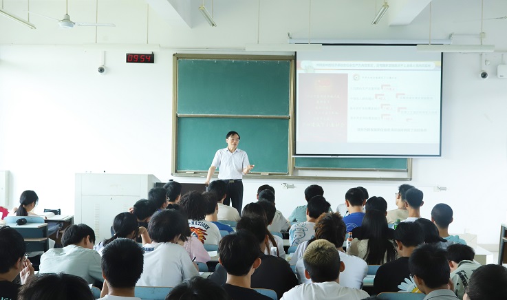 校领导深入学生课堂,为大学生讲授思政课,是深入贯彻落实习近平总书记关于“大思政课”重要指示精神的生动实践,推动党的创新理论进教材进课堂进学生头脑的重要举措。通过专题讲授,引导同学们学深悟透党的创新理论,厚植爱党爱国爱社会主义的情感,弘扬伟大建党精神,坚定走好中国道路、实现中华民族伟大复兴的信心和决心,奋进新征程、建功新时代,以更加优异的成绩喜迎党的二十大胜利召开。(文/图:王勇 蒋芮;审核:刘晓君)